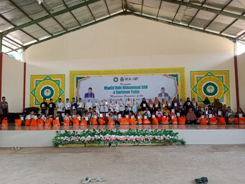 Pondok Pesantren Qothrotul Falah Cikulur Lebak Banten bekerja sama dengan Ikatan Alumni (IKA) Qothrotul Falah menyelenggarakan Maulid Nabi Muhammad Saw, Ahad, 5 Oktober 2025. Kegiatan yang dihelat di GOR Qothrotul Falah ini diisi dengan hadrah, mahalul Qiyam, tausiah dan utamanya santunan ratusan anak yatim dari desa sekitar peantren.